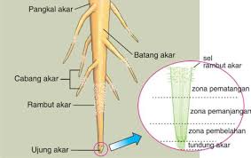 akar, cabang akar, serabut akar, rambut akar, ujung akar, dan tudung akar